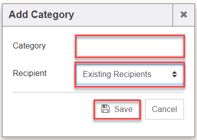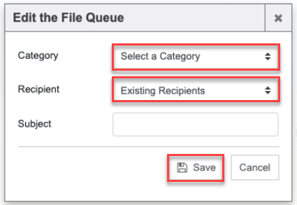1. Select a Category and Recipient (file) to move between the two areas, if one needs to be updated. The Subject can also be added/changed. Click the “Save” button.