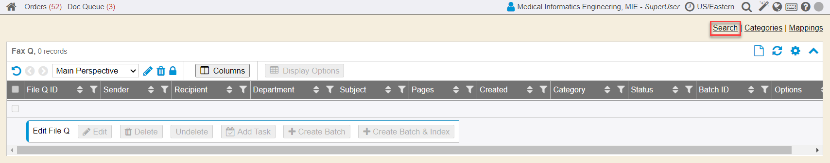 1. Click the Search link in the top right corner of the File Queue sidemenu tab