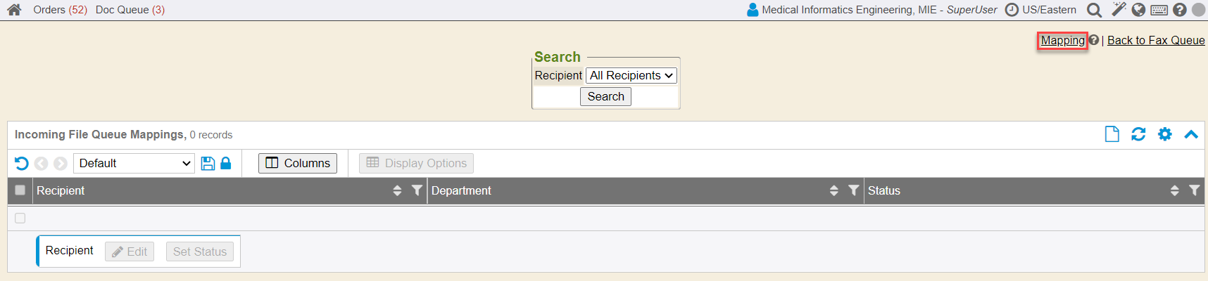 1. Select a Recipient or add a recipient and then select the department that will be mapped. Click the “Save” button.